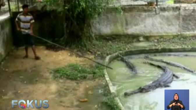 Fokus, Riau - Buaya yang menerkam seorang bocah hingga tewas di Desa Sontang, Rokan Hulu, Riau, berhasil ditangkap warga.
