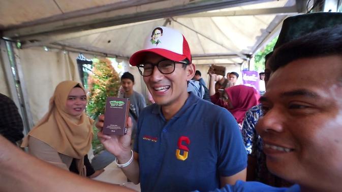 Liputan6.com, Jakarta - Cawapres Sandiaga Uno bertemu dengan para perajin peralatan rumah tangga Kalibaru, Banyuwangi, Jawa Timur. Sejumlah ibu-ibu pun berebut salaman, swafoto dan ingin berada di dekat mantan Wagub DKI Jakarta itu.