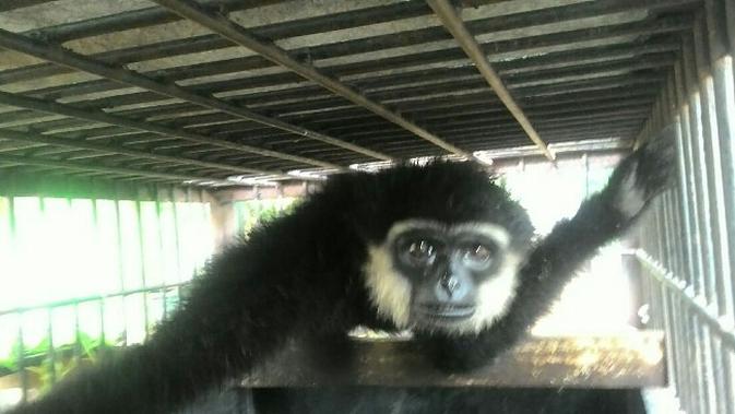 Satwa bernama latin Hylobates agilis itu sudah berada di kandang transit BBKSDA di Jalan HR Soebrantas Pekanbaru.