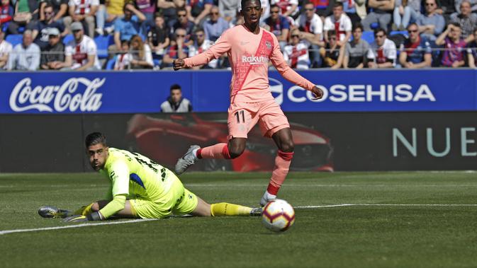 Tanpa pemain bintang, Barcelona kesulitan menembus pertahanan Huesca. Dembele hampir memecah kebuntuan di menit 16 tapi bisa ditepis kiper Santamaria.