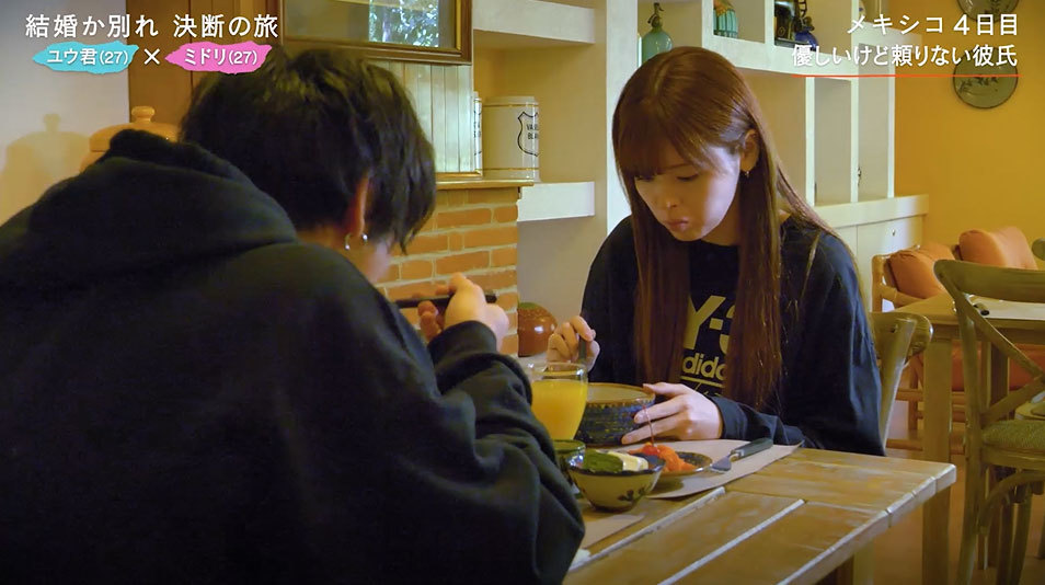 ミドリから頼りないと思われていることは、ユウ君自身も自覚していた。3日目を迎えるにあたり、「ミドリを引っ張っていきたい」と意気込んでいたユウ君だったが、オーダーメイドの指輪に彫る文字を決める場面で、ユウ君は「どうする?」「何でもいいよ」といった発言を連発。結果、ミドリを苛立たせてしまった。